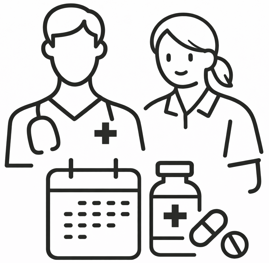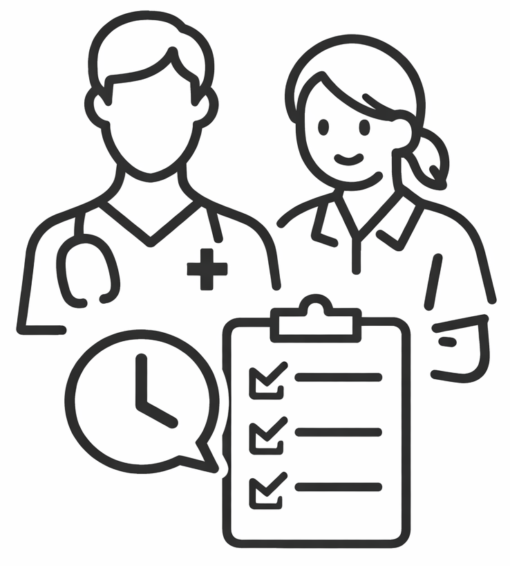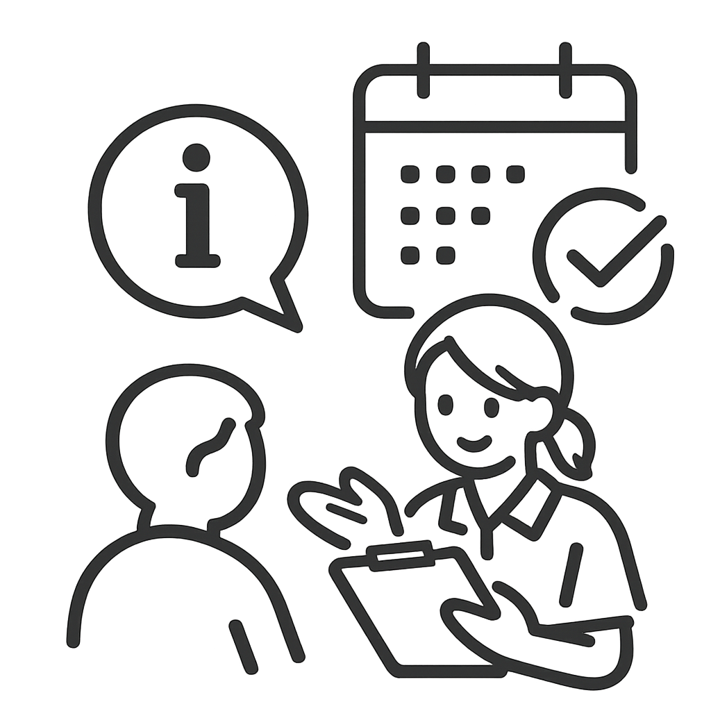 担当スタッフが、患者さんの基本情報と症状に基づいて、訪問診療開始のタイミングを判断し、初回訪問の調整します。説明だけを希望されても結構です。